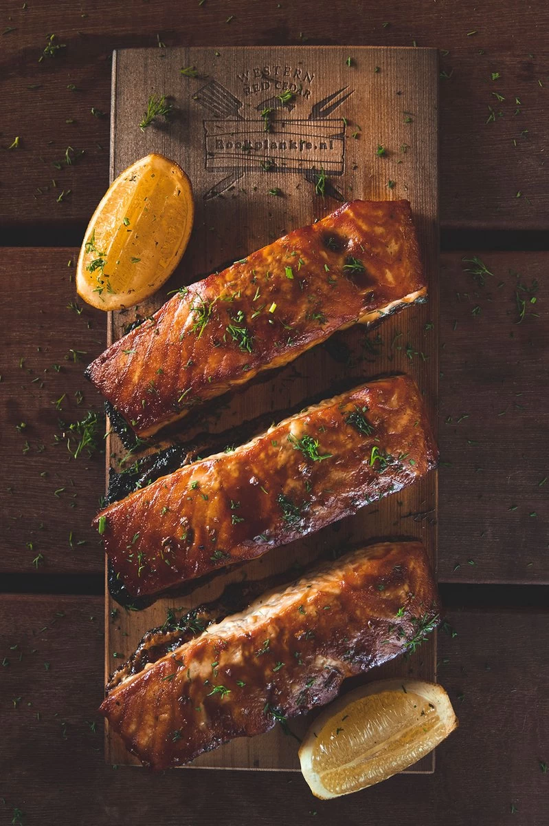 Western Red Cedar geeft een krachtige zoet-spicy rooksmaak die zeer goed past bij vis, maar ook verrassend goed combineert met groenten en fruit.