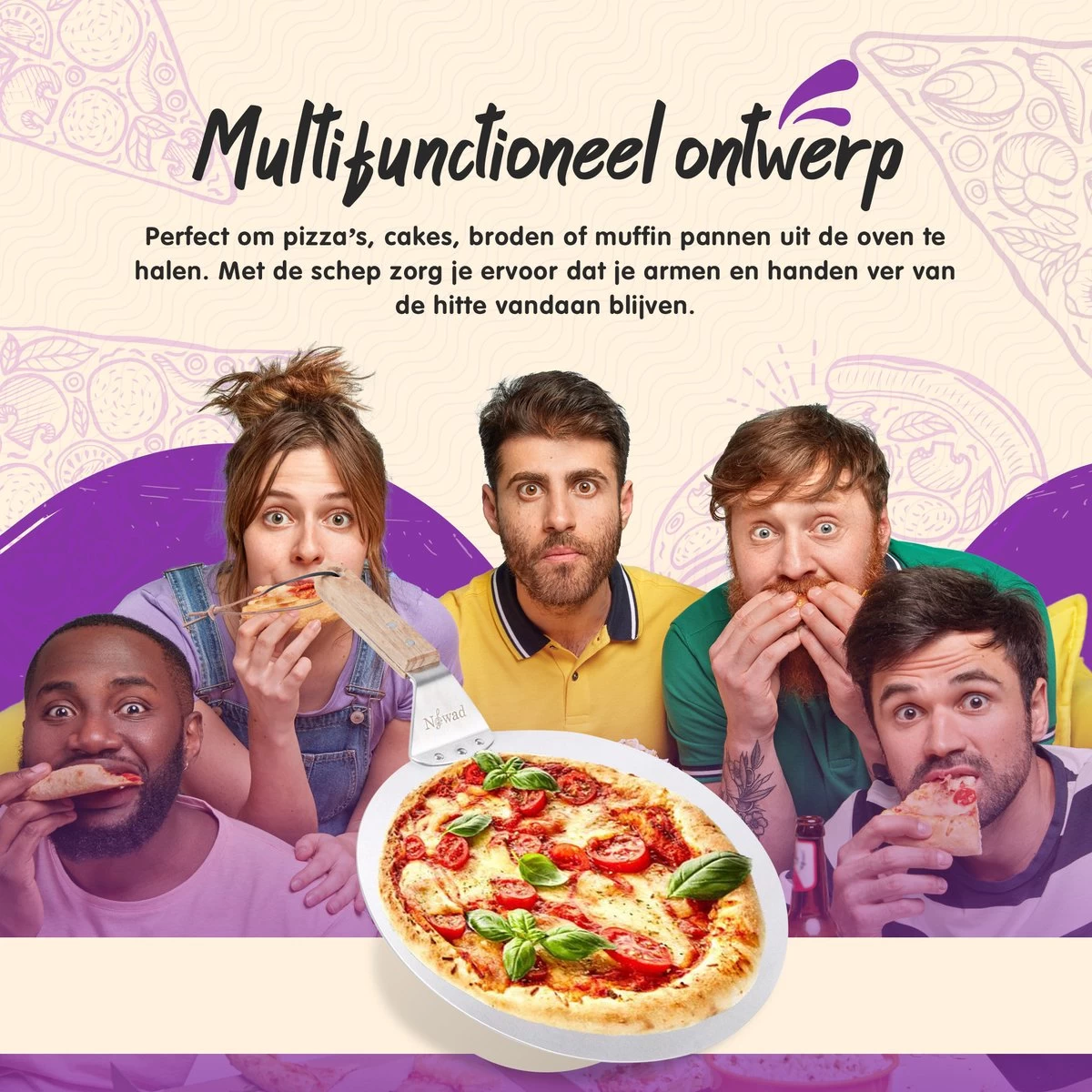 Wacht niet langer en bestel vandaag nog onze Nowad Pizzaschep! Bescherm jouw handen en schuif jouw pizza, taart of cake zorgeloos de oven in!