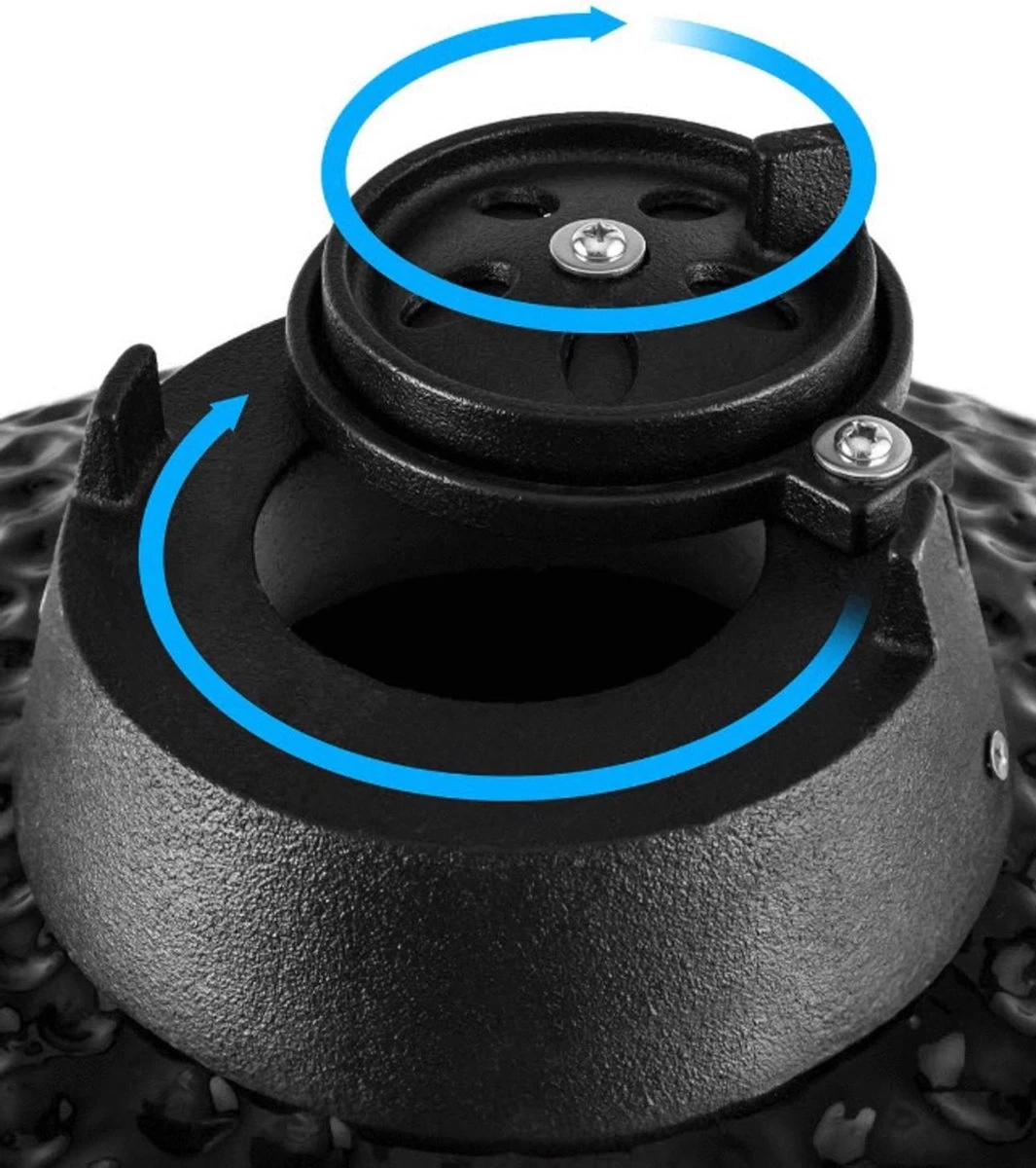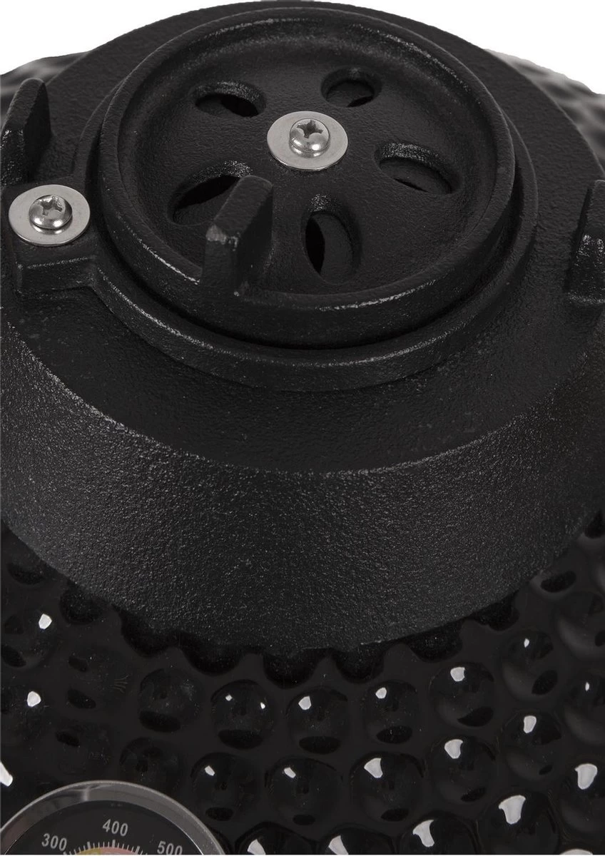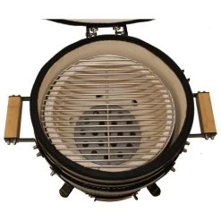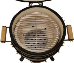Naast aflezen, is de temperatuur ook eenvoudig te controleren en te regelen door de combinatie van het ventilatierooster aan de onderzijde met de magrietschijf/top vent aan de bovenzijde. Ook aan het grillrooster is gedacht, deze heeft een scharnierend deel zodat je makkelijk houtskool kunt toevoegen. De Premium Kamado is gemaakt van hoogwaardig, geglazuurd industrieel keramiek, dit is bestand voor temperaturen tot zo’n 1000 graden Celsius.