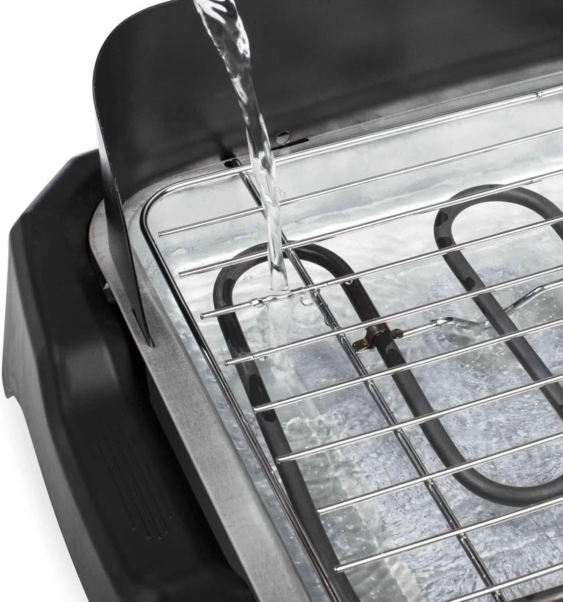 De tafelbarbecue is uitgerust met een vetopvangbak. Al het vet dat tijdens het bakken vrijkomt wordt afgevoerd en opgevangen in dit bakje. Hierdoor blijft het eten gezond en lekker knapperig.